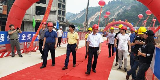 2019年6月17日,春光明媚,晴空萬里。恒建紫金灣住宅小區(qū)二期二標(biāo)建設(shè)項目舉行隆重的開工儀式。衡東縣政府羅慧斌副縣長、縣住建局領(lǐng)導(dǎo)趙自文局長、劉幸福副局長,恒建公司董事長譚永建、總經(jīng)理朱林春,我公司董事長程山虎、總經(jīng)理李鋒、副總經(jīng)理程超、總工程師黎軍等同志及相關(guān)單位負(fù)責(zé)人參加了此次開工儀式。